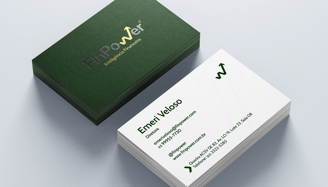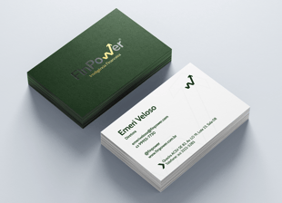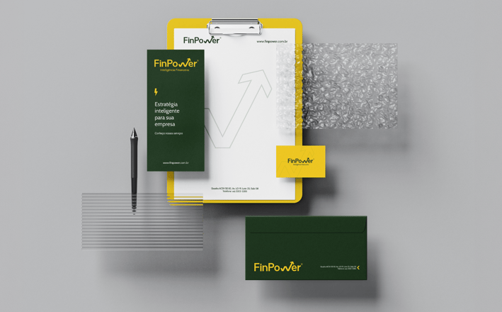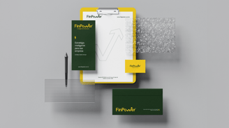 Para a FinPower construí uma identidade visual que reflete não apenas os serviços para um bom crescimento financeiro, como também a direção certa para um bom desenvolvimento empresarial sinalizada com o símbolo juntamente com o logo.